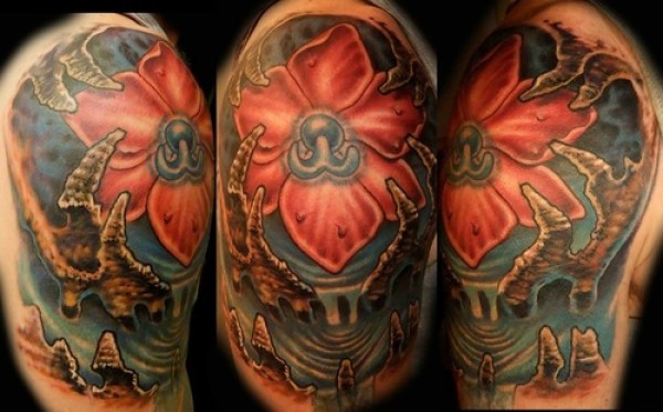 手臂莲花蛇纹身图案_臂部纹身图案大全_纹身图吧