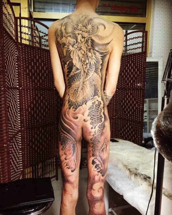 遮盖整个后背的大邪龙纹身图片