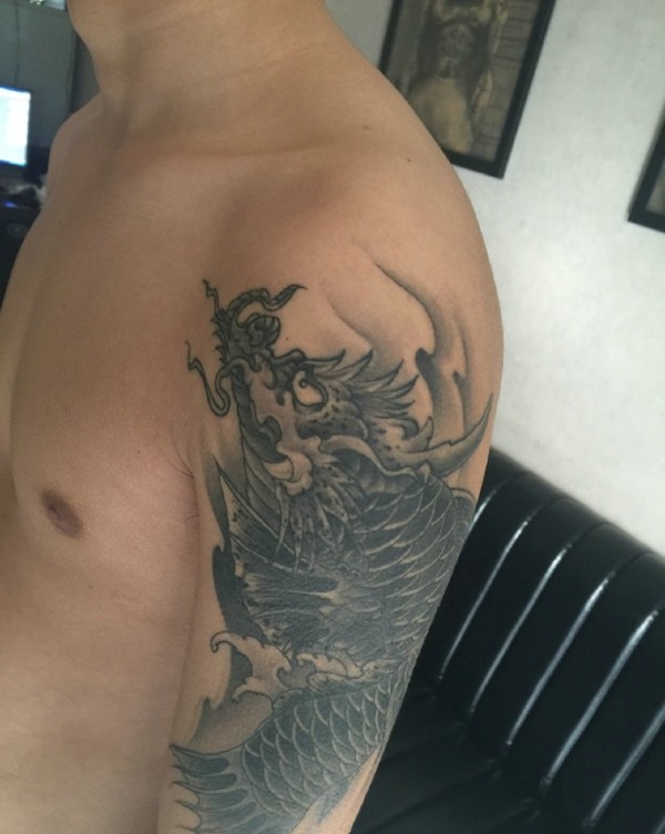 日式手彫刺青作品—半甲龙很感谢客户认可手彫刺青,手彫是日本纹身的手工雕刻技术,时间可以追溯到日本17世纪的江户时代。19世纪,手彫技术被日本黑帮挪用,被用作入会仪式,象征着从此就是江湖中人。在日式传统