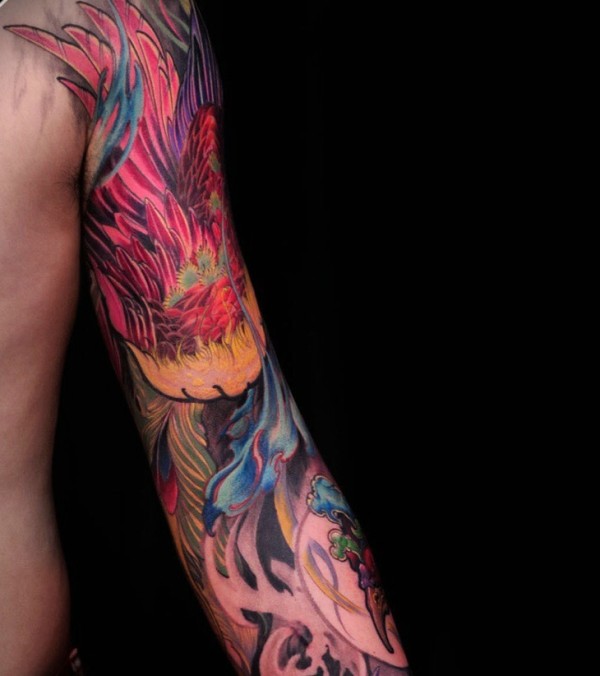 相当惊艳的手臂火凤凰纹身图片