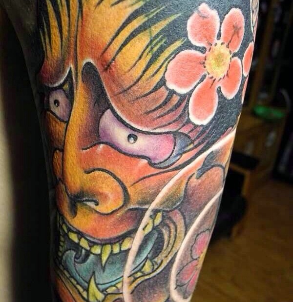 大臂鲜艳无比的彩色般若纹身图片