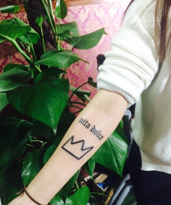 简单秀气的手臂时尚英文纹身图片