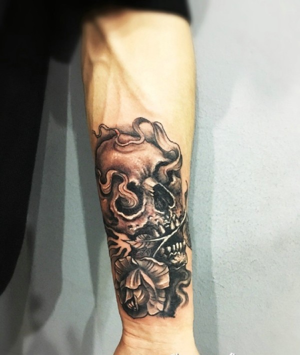 个性手臂悲伤的骷髅纹身图案图案图片_骷髅纹身图案大全_纹身图吧