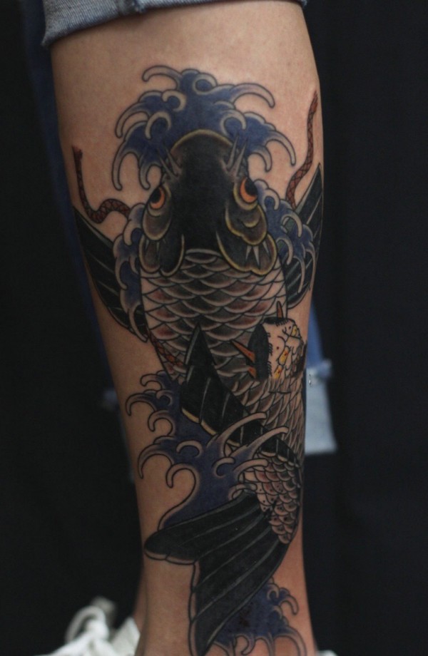 腿部鳌鱼纹身图案_腿部纹身图案大全_纹身图吧