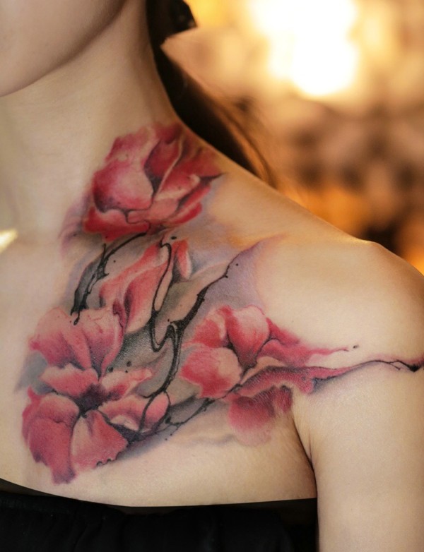 后肩唯美花藤英文图案图片_植物纹身图案大全_纹身图吧