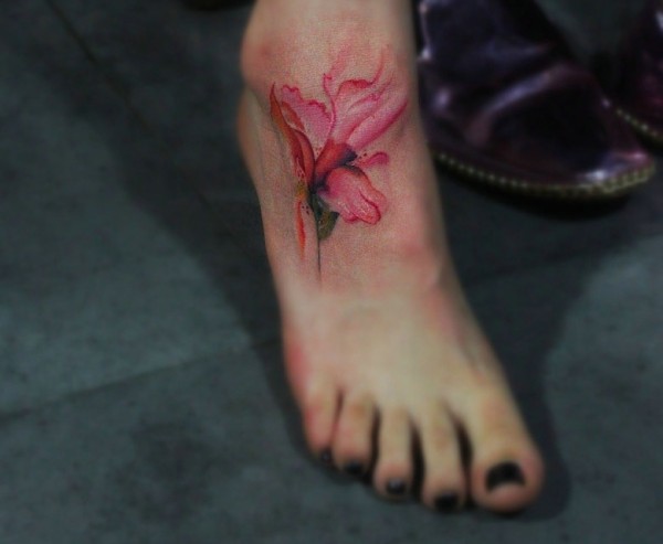 性感的裸脚上有着一朵喇叭花纹身图片