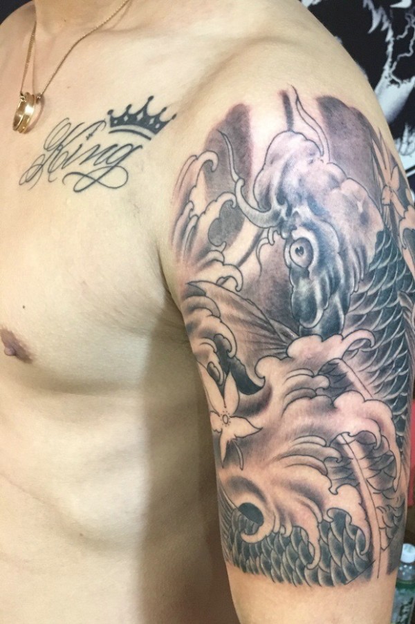 日式手彫刺青作品—半甲龙很感谢客户认可手彫刺青,手彫是日本纹身的手工雕刻技术,时间可以追溯到日本17世纪的江户时代。19世纪,手彫技术被日本黑帮挪用,被用作入会仪式,象征着从此就是江湖中人。在日式传统