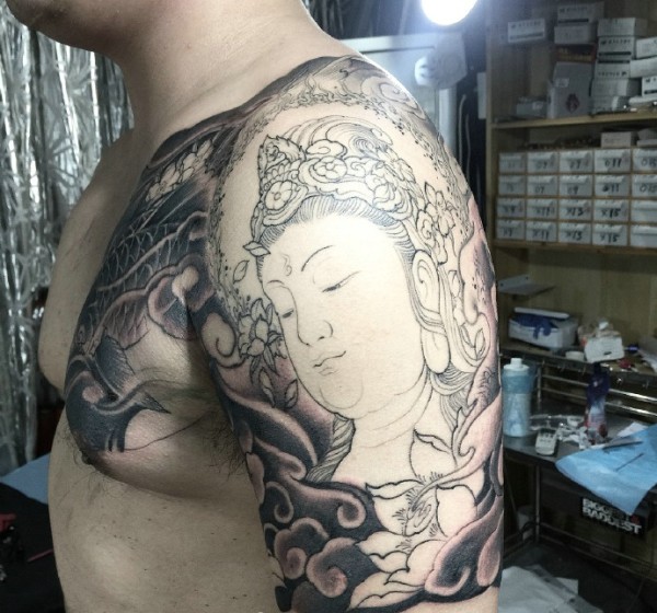 鲤鱼和如来佛结合的半甲纹身刺青