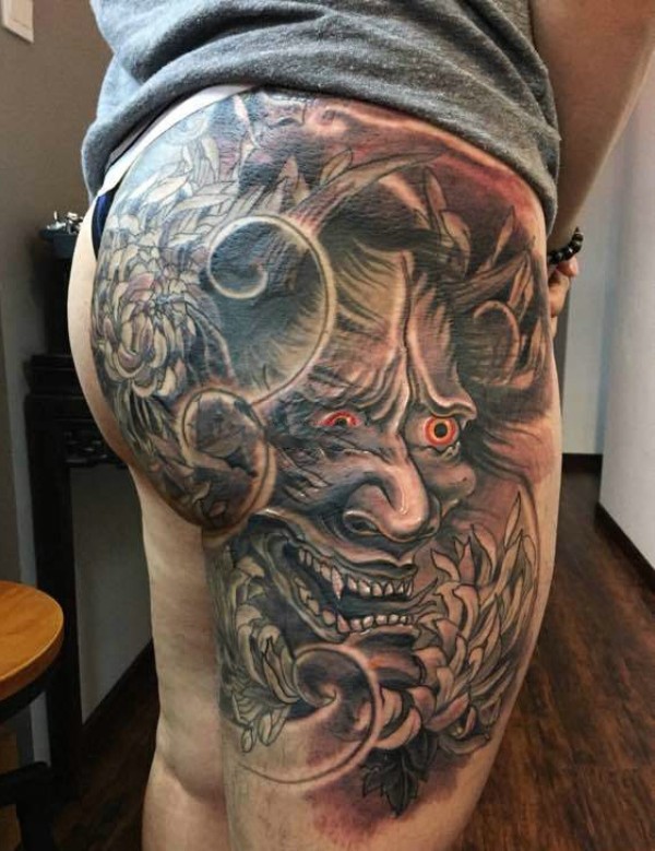 传统花腿纹身--18张传统风格的大花腿纹身图案作品