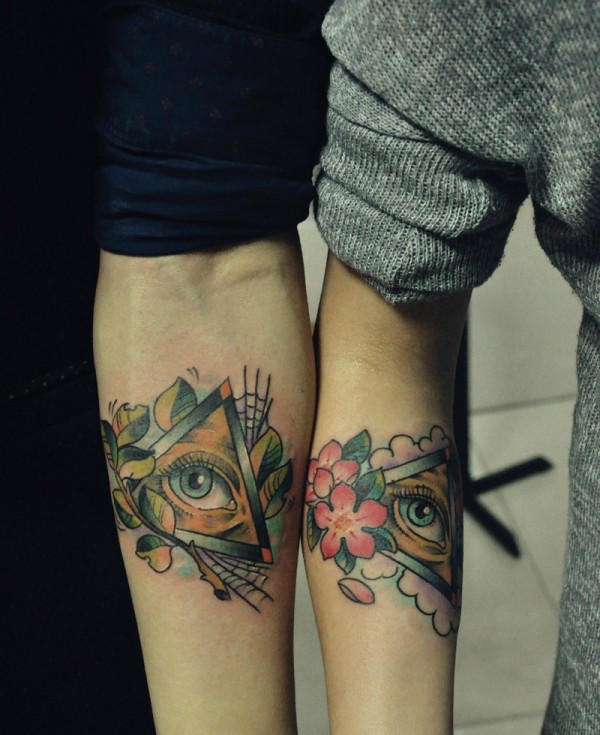 一双明亮的上帝之眼手臂情侣纹身图片
