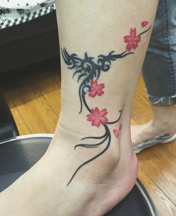 清新小桃花脚踝纹身_脚部纹身图案大全_纹身图吧