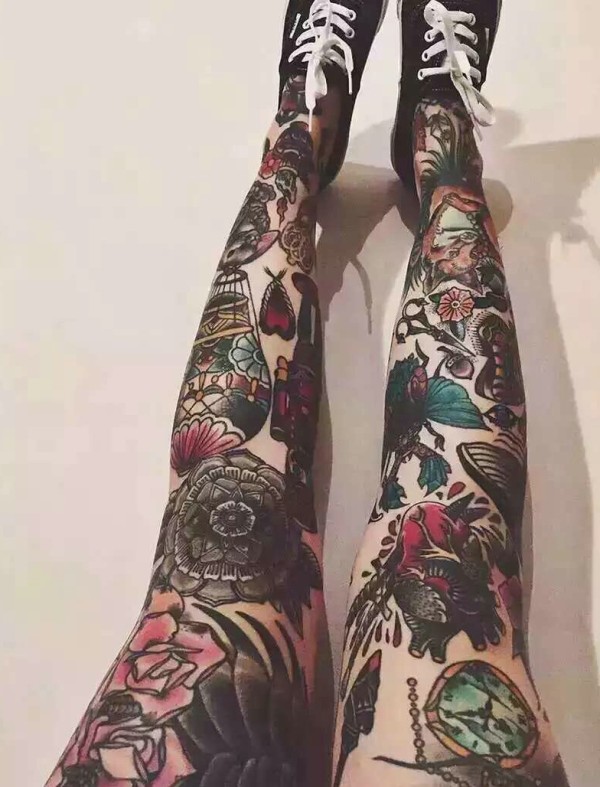 传统花腿纹身--18张传统风格的大花腿纹身图案作品