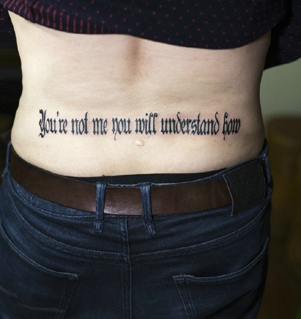 女生后腰纹身黑白灰风格抽象线条纹身图案