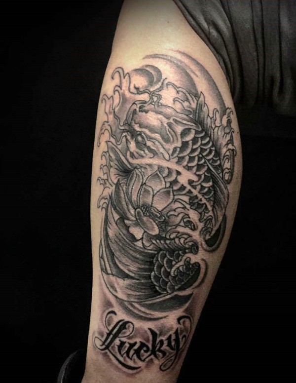传统鲤鱼花小腿纹身_腿部纹身图案大全_纹身图吧