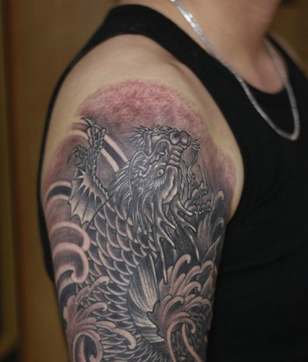 日式手彫刺青作品—半甲龙很感谢客户认可手彫刺青,手彫是日本纹身的手工雕刻技术,时间可以追溯到日本17世纪的江户时代。19世纪,手彫技术被日本黑帮挪用,被用作入会仪式,象征着从此就是江湖中人。在日式传统
