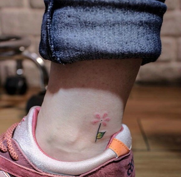 女生脚踝上的小清新花朵纹身图片