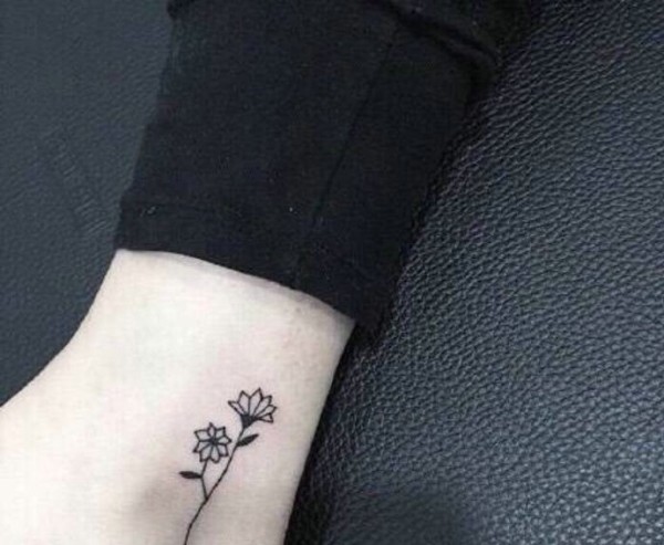 女生脚踝上的小清新花朵纹身图片