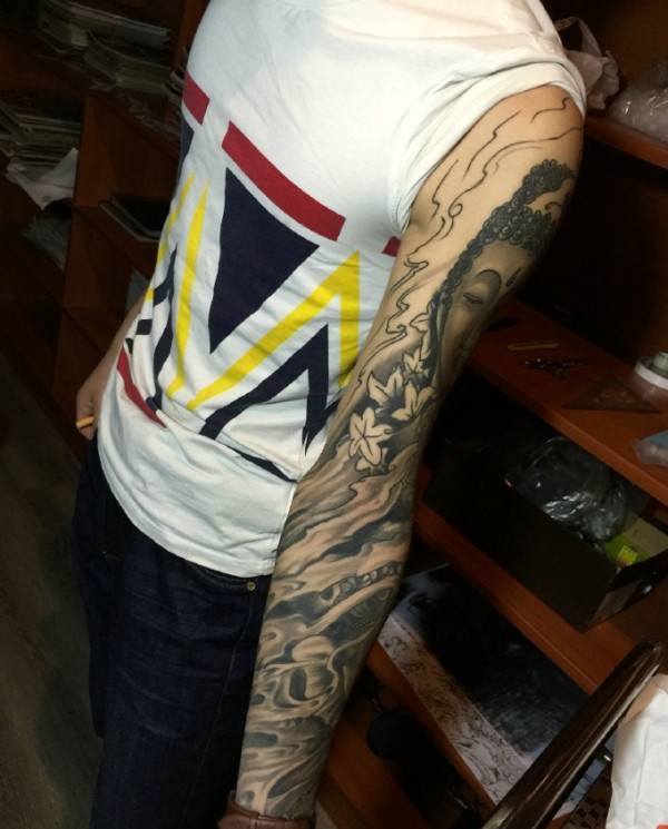 手臂黑白如来佛纹身刺青霸道十足