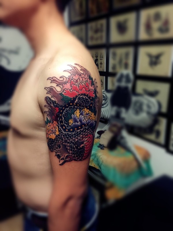 日式手彫刺青作品—半甲龙很感谢客户认可手彫刺青,手彫是日本纹身的手工雕刻技术,时间可以追溯到日本17世纪的江户时代。19世纪,手彫技术被日本黑帮挪用,被用作入会仪式,象征着从此就是江湖中人。在日式传统