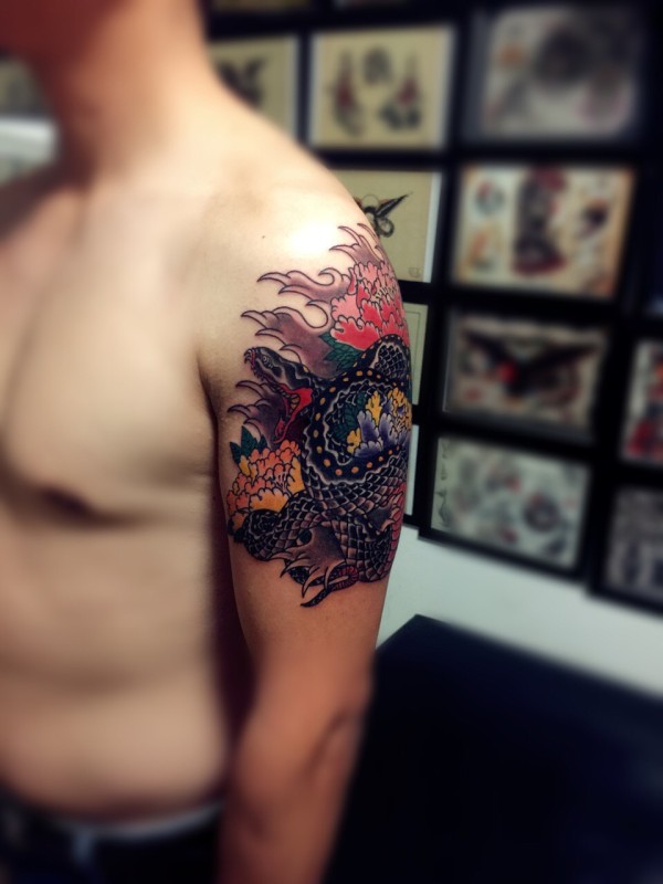 日式手彫刺青作品—半甲龙很感谢客户认可手彫刺青,手彫是日本纹身的手工雕刻技术,时间可以追溯到日本17世纪的江户时代。19世纪,手彫技术被日本黑帮挪用,被用作入会仪式,象征着从此就是江湖中人。在日式传统