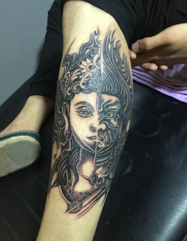 传统花腿纹身--18张传统风格的大花腿纹身图案作品