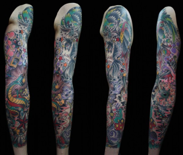 school花臂纹身--一组漂亮的school风格的花臂纹身图案作品