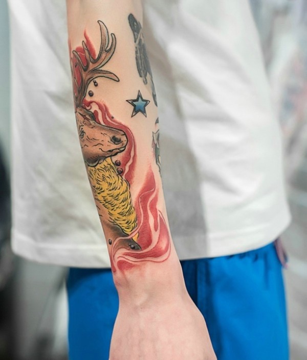 德国恐龙纹身眼镜蛇和卡通鳄鱼纹身水彩动物图案纹身