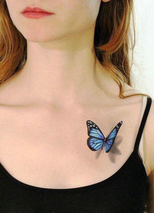 女性喜欢的漂亮的3D立体蝴蝶纹身图案