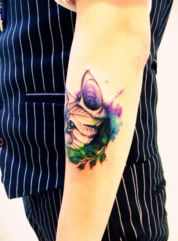 大眼萌萌的手臂小猫头像纹身图片很可爱