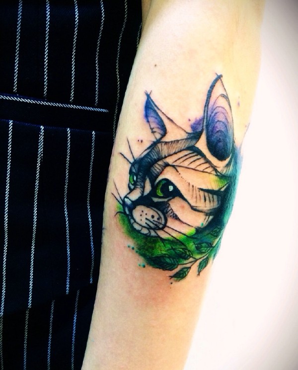 大眼萌萌的手臂小猫头像纹身图片很可爱