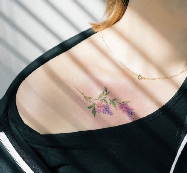 女性肩膀上多款漂亮的花朵纹身图案