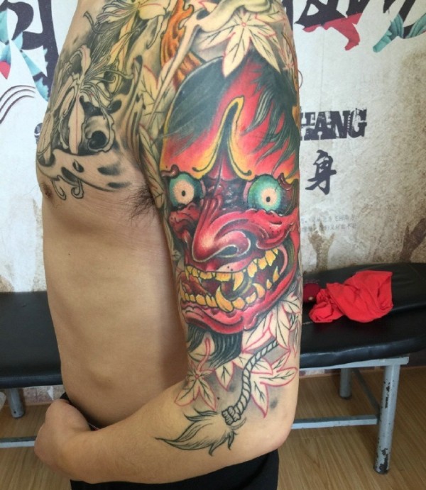 老传统半甲彩色般若纹身刺青