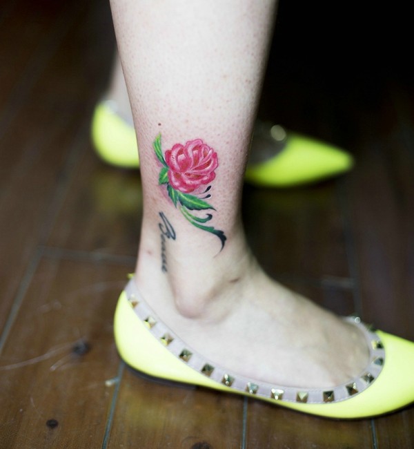 女生脚踝上的小清新花朵纹身图片