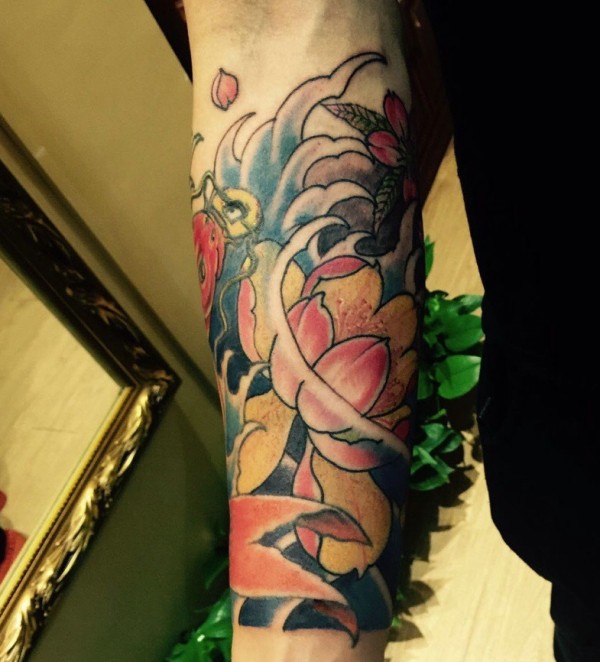 手臂莲花蛇纹身图案_臂部纹身图案大全_纹身图吧