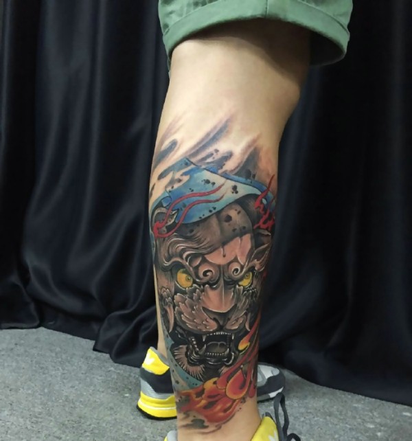 花腿纹身--一组大黑腿纹身图案作品欣赏