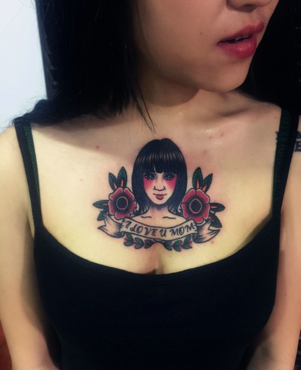 女性大花胸纹身_43张霸气漂亮的女性大花胸纹身图案作品