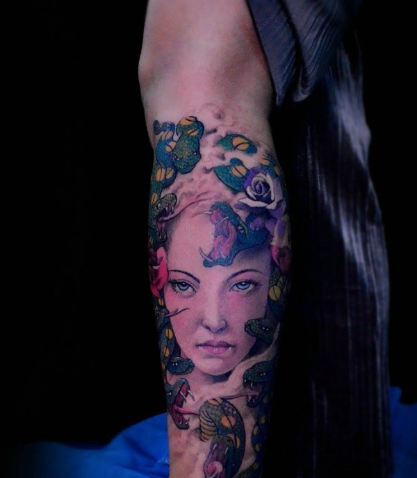 德国恐龙纹身眼镜蛇和卡通鳄鱼纹身水彩动物图案纹身