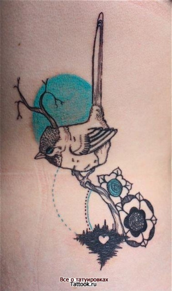 小鸟花点刺纹身图案