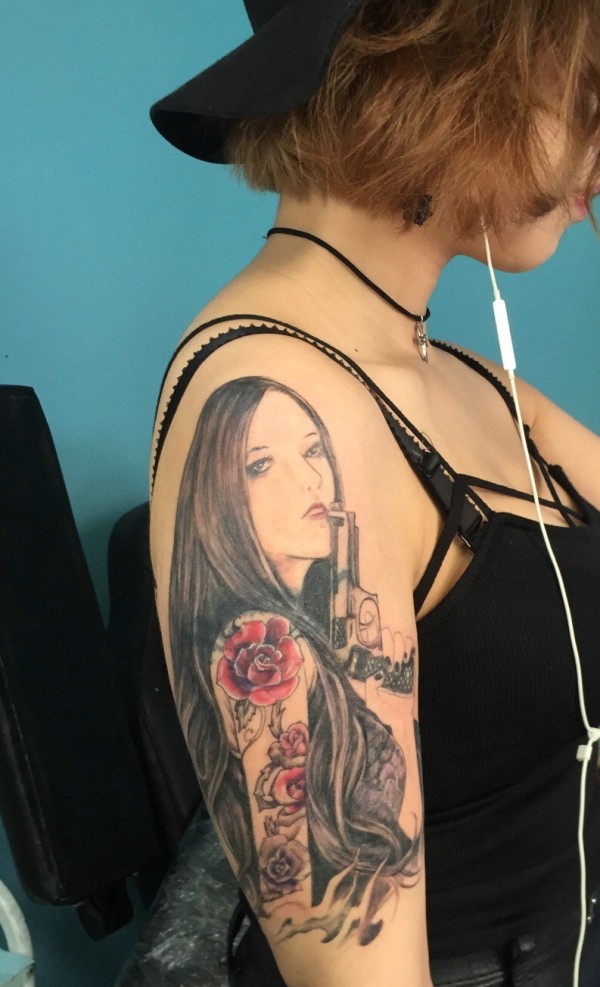 女性肩部肖像刺青_肖像纹身图案大全_纹身图吧