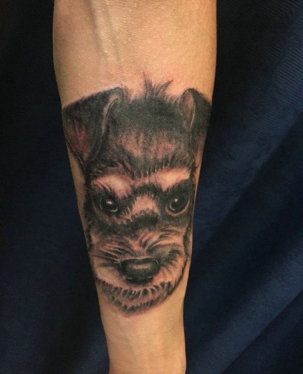 手臂外侧双重小狗头像纹身图片