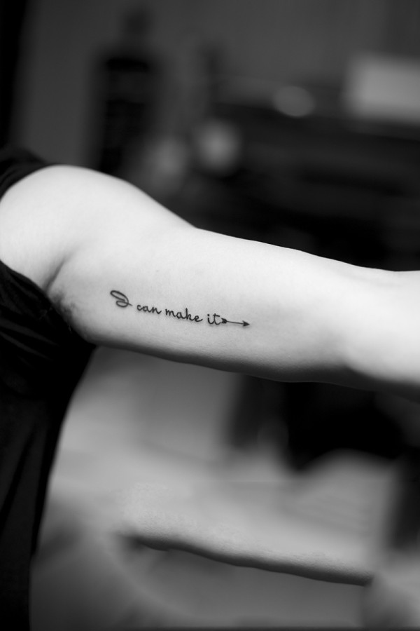 中国有嘻哈TT手臂上花体英文纹身图片