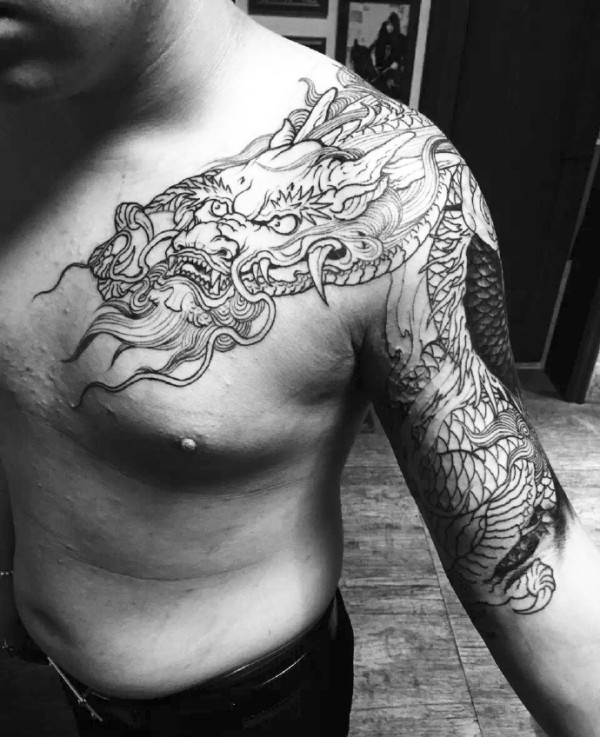 简直亮瞎双眼的半甲邪龙纹身刺青