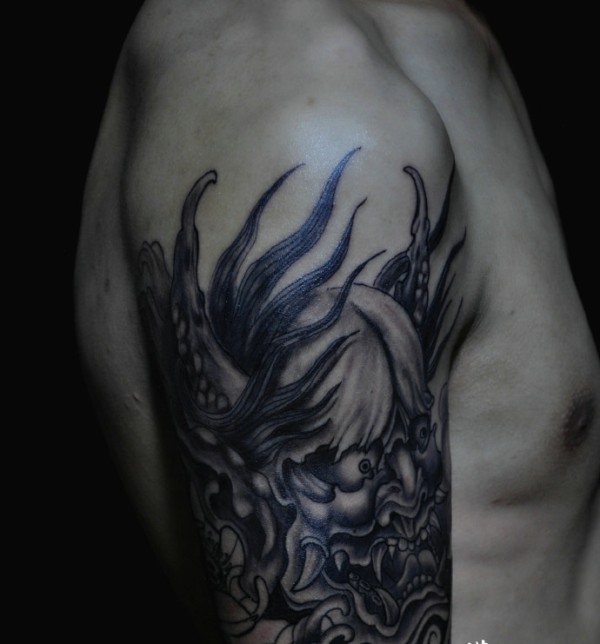 帅气十足的大臂黑白般若纹身刺青