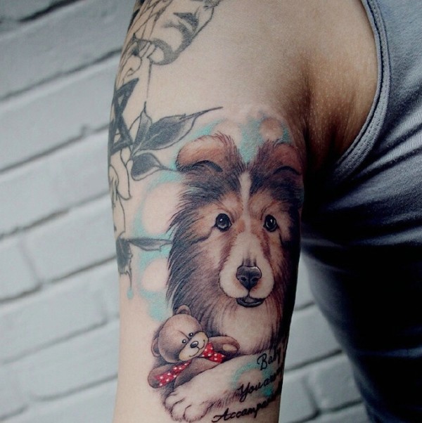 慈祥的汪妈妈花臂纹身刺青很亲切