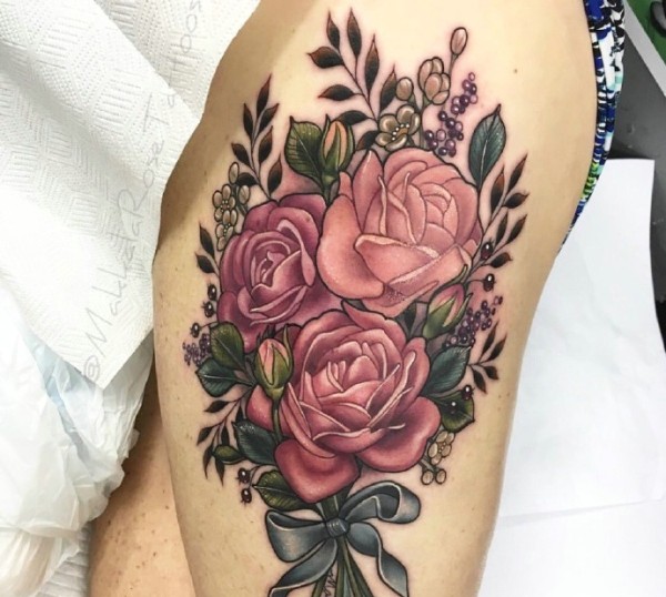 传统花腿纹身--18张传统风格的大花腿纹身图案作品
