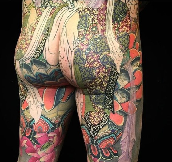 无法抵抗的满背彩色日式纹身图案