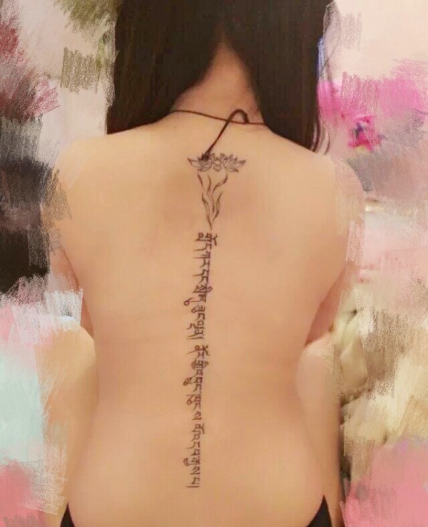年轻派的脊椎部时尚梵文纹身刺青