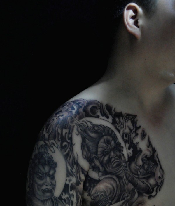 30款男性超帅气的黑灰色脖子纹身图案大全