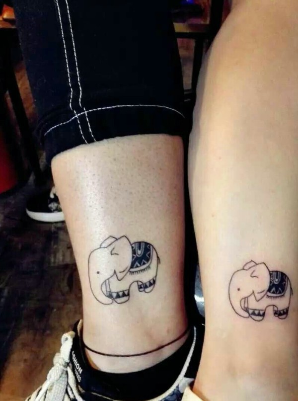 腿部一款萌萌哒小象情侣纹身图案