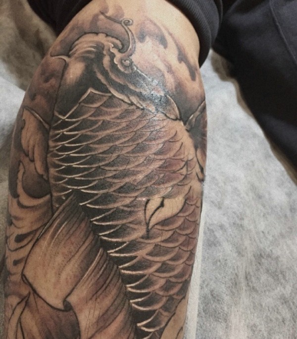 包小腿黑灰鲤鱼纹身刺青男人味十足